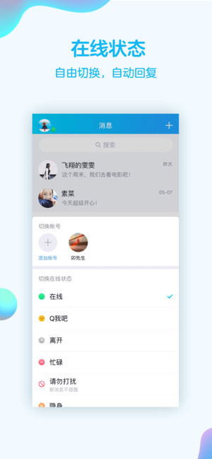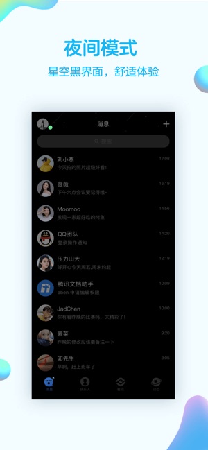 -----QQ•乐在沟通----- √服务超过90%的移动互联网用户 √多人视频、文件多端互传,不断创新满足沟通所需 √致力于打造欢乐无限的沟通、娱乐与生活体验 -----主要功能----- •聊天消息:随时随地收发好友和群消息,一触即达。 •语音通话:两人、多人语音通话,高清畅聊。 •视频聊天:亲朋好友,想念不如相见。 •文件传输:手机、电脑多端互传,方便快捷。 •空间动态:更快获知好友动态,分享生活留住感动。 •厘 米 秀:换装扮、炫动作、偷胶囊,年轻人最爱的潮爆玩法。 •个性装扮:主题、名片、彩铃、气泡、挂件自由选。 •游戏中心:天天、全民等最热手游,根本停不下来。 •移动支付:话…