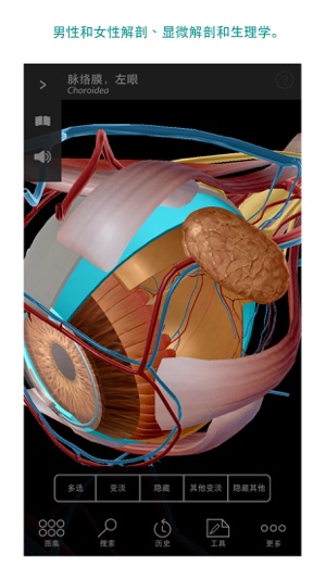 注: 本产品还可提供更强大的版本: 2017版人体解剖学图谱! 全新的2017版人体解剖学图谱是迄今为止最强大的三维解剖学参考。 它包括三维模型、横截面、MRI和CT扫描、尸体图片、肌肉和骨骼的三维运动模型、生理学动画和更多内容! 到我们的App Store页面一探究竟吧。 它需要一台iPad Pro、iPad Air、iPad Mini 2或更新机型,或一台iPhone 5s或更新机型。 * 该应用程序更具全球性! 我们已经有了英语、法语和德语版本。此版本又新增了另外3种语言:日语、意大利语和西班牙语。 Visible Body 的《人体解剖图谱》是最畅销、解剖最精准的男女人体三维图谱。…