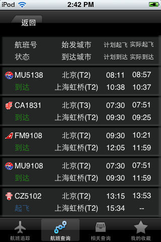 接机时,你还在为计算时间而费心吗?你还为飞机误点而担忧吗? 不用担心,现在有了航班追踪,只要有网络环境您就能随时随地的了解航班的实时情况及飞机所处的位置。 让你的接机更省力更安心。 航班追踪几乎包含了全国所有的航线信息,拥有此应用,您就可以在地图中俯瞰飞机,让您更迅速直观的了解航班情况。 应用程序特点: 1.根据航班号追踪你想追踪的航班。 2.根据城市查找到查找你要的航班并追踪该航班。 3.查找相关信息,例如航空公司,机场服务电话和网址。 4.可将常用的航班添加到收藏。 附赠离线资料: 各航空公司官方网址及服务电话 各大城市机场官方网址及服务电话 为感谢大家的支持,我们将不定时的提供促销免费活动,感兴趣的朋友可关注我们的微博了解最新情况。 sina微博: http://weibo.com/mkios