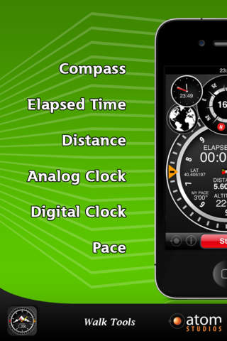 *** TOP 10 IN 60 COUNTRIES *** *** Featured as 'New and Noteworthy' by Apple *** From the creators Bike Cyclocomputer HUD (featured by Apple as ‘New and Noteworthy’) comes Walk Tools. Walk Tools is the best solution for getting info of your hike or walk. This app gives you all the data you need to know exactly how you are performing your excersise. Walk Tools gives you a plethora of high precision instruments, especially designed for getting the most of your hike: Compass, Elapsed Time, Distance, Analog Clock, Digital Clock, Pace, Lattitude, Longitude, Altimeter, Course, and GPS Signal power in a simple and beauty app that will be the perfect companion for you. Those instruments have been callibrated specially for walking or hiking so that you never miss again any valuable information. MAIN FEATURES: Ultra high precision instrumets Callibration made for walking or hiking 60 frames per second animation Accurate calculations Automatic zoom enabled map. Keeps you always centered on the map TECHNICAL FEATURES High precision GPS Nice Start/Stop sounds Beauty Retina Display graphics Autozoom English and Metric units settings Multitasking ON/OFF setting to save battery INSTRUMENTS Compass Elapsed Time Distance Analog Clock Digital Clock Pace Lattitude Longitude Altimeter Course GPS Signal power PLEASE NOTE: For using this app, you must have a GPS and compass equipped device, such as an iPhone 3GS or an iPhone 4. This application is NOT RECOMMENDED FOR IPOD TOUCH, NON-3G IPAD OR 1ST GENERATION IPHONE devices due to their limited hardware capabilities.