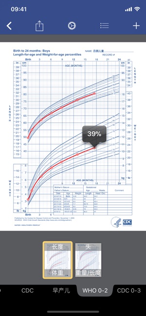 将成长曲线叠加在标准的百分位曲线上,将其成长进度与预期成长速度对比,跟踪婴儿或儿童的成长。 根据孩子年龄调整了图表:非常适合新生儿以及年龄较大的儿童 自动计算百分位 WHO和CDC提供的成长百分位(出生到20岁) 对于早产儿,支持专用的图表(芬顿)和校正年龄 公制(千克,厘米)和美制(盎司,磅,英尺,英寸)单位 将您的数据传输到其他设备(AirDrop或电子邮件) 通过Facebook和Twitter分享图表 邮寄您的图表和测量清单 支持CSV 支持PDF 通过AirPrint实现快速高品质的打印 如果您喜欢这个程序,请升级以获得: 无限数量的儿童成长记录 从体重和身高自动生…