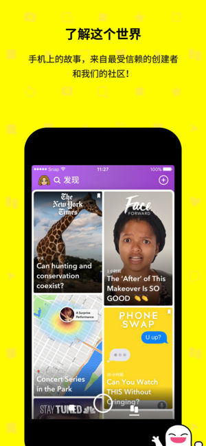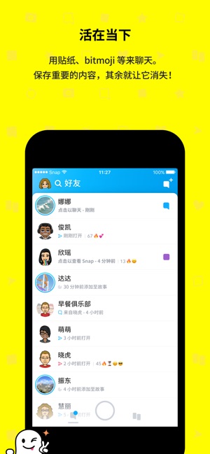 Snapchat 是分享点滴生活的非常有趣的方式! 拍一张 Snap,添加标题或有趣的特效,然后将其发送给你的挚友。 SNAP • Snapchat 打开即是相机,让你在几秒钟内就可分享特殊时刻。 • 每天都有全新的自拍镜头和滤镜,让你可以随意更改照片效果,跟随 3D Bitmoji 舞动,或者用你的脸玩各种有趣的游戏。 聊天 • 通过实时消息和群组故事,与好友和群组保持联系。 • 可同时与多达 16 位好友视频聊天。在聊天时你甚至还可以使用滤镜和镜头! 发现 • 关注你的好友,查看他们的日常故事 • 观看爆炸性新闻、原创表演和社区故事——仅为你的手机定制。 Snap 地图 - 如…