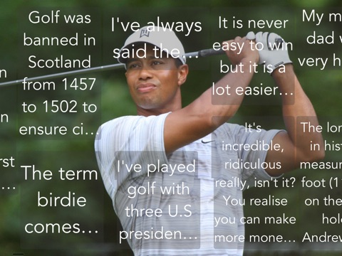 Golf is deceptively simple and endlessly complicated. -Arnold Palmer Learn fun and fascinating Golf facts and quotes from famous Golf legends and people with Ultimate Golf. Share them with friends and family through Twitter, Facebook and email! Ultimate Golf will energize the Golfer in you! I like trying to win. That's what golf is all about. -Jack Nicklaus. One lesson you better learn if you want to be in politics is that you never go out on a golf course and beat the President. -Lyndon B. Johnson, If you watch a game, it's fun. If you play it, it's recreation. If you work at it, it's golf. -Bob Hope I met my wife through playing golf. She is French and couldn't speak English and I couldn't speak French, so there was little chance of us getting involved in any boring conversations - that's why we got married really quickly. -Sean Connery Did you know that Golf Balls travel significantly further on hot days? Did you know that Golf was banned in Scotland from 1457 to 1502 to ensure citizens wouldn't waste time when preparing for an English invasion?