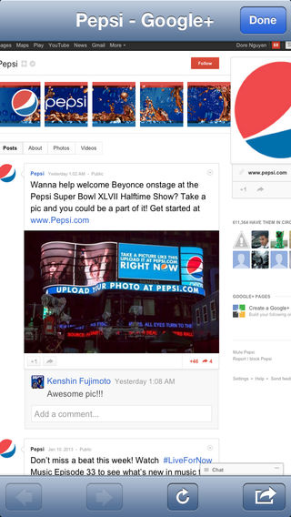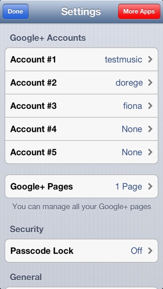 SHORT SUMMARY: An app for Google+ that helps you easily manage and use multiple Google+ accounts quickly, full support for Business Page, Stream, Photos, Circles, Profile, Notification, etc. and with a lot of productivity and time-saving features (please continue reading for details) ───────────────────── DETAILED DESCRIPTION: This app is based on Google+ mobile web, however, we expand it to a new horizon to bring unique features and experiences that you could not find anywhere else. Besides our unique features, this app also provides full support for Business Page, Stream, Photos, Circles, Profile, Notification. etc. Compatible with iPhone, iPod and iPad. Happy Google+ing with our app on all your devices. ───────────────────── UNIQUE FEATURES ONLY IN OUR APP: ★ [NEW] Support iPhone 5 screen and iOS 6.x ★ Support Google+ Business Page ★ Support 2-step verification ★ Manage up to 5 Google+ accounts securely and easily ★ Support auto login with any of your 5 Google+ accounts ★ Support one-click switching between Google+ accounts ★ You don't have to enter password every time you need to check your streams or circles (just need to enter 4 digit passcode) ★ Support passcode to protect your accounts and the usage of this app ───────────────────── SUPPORT FOR BELOW GOOGLE+ FEATURES: ★ [NEW] Support Google+ Business Page ★ Support re-sharing a post ★ Support sharing a new post easily ★ Support Stream (also support near by stream, incoming stream) ★ Support Photos ★ Support Circles ★ Support Profile ★ Support Notification ★ Support Location ★ Support Sparks ───────────────────── WHAT IS GOOGLE+: Among the most basic of human needs is the need to connect with others. With a smile, a laugh, a whisper or a cheer, we connect with others every single day. And Google+ come to fulfill your need of connecting and sharing, and we make your Google+ experience even better and more enjoyable with this app. Now you can share and connect with people the way that you cannot do with Facebook or Twitter. ───────────────────── NOTE: This app is developed by MMobileDev and our app is not affiliated with, or endorsed by Google in any way. For more information about us, please visit www.MMobileDev.com