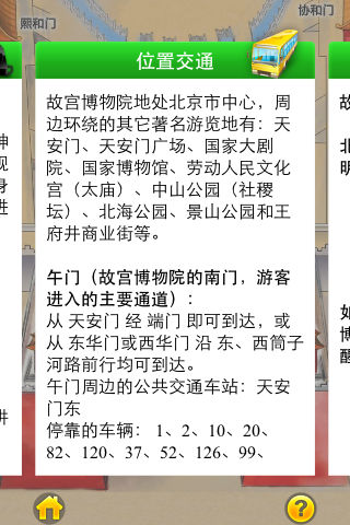 故宫,也称紫禁城,是世界上现存最大、最完整的宫廷建筑群,是无与伦比的中国古典建筑典范,也是北京甚至全中国最重要的旅游目的地之一。 北京导游高清手绘系列故宫语音版,采用手工绘制的精美导游图,全景式展现故宫内各景区的建筑风格、历史故事、文化背景等方方面面,更有众多交通指南、游览资讯等贴心小提示,让您充分体验到专业导游的顶级服务,省时、省力、更省心! 故宫语音版,主要功能有: 1、可随意缩放的高清手绘导览图,帮助您快速规划游览路线; 2、20个景点的详细介绍及精美图片,让您直观全面了解故宫的历史文化; 3、每个景点均有专业人士全程语音详细解说; 4、景点的查询和跳转; 5、丰富的旅游资讯,包括交通出行、开放时间、票务政策、服务设施等,为您考虑到旅游中每一个细节。 私人导游陪你走进皇城,细数风云历史。