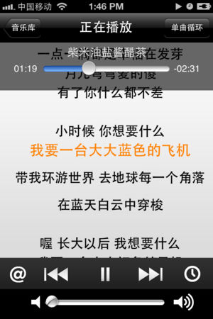 MP3播放器可以让你方便的管理iOS设备中的mp3音乐文件,按照文件名管理文件,能有效的解决iTunes同步时,中文歌曲乱码的问题,支持无线管理,支持自建文件夹分类,可以显示歌词,特别是当你备考复习听很长时间的录音mp3,学习英语时要管理一堆的音频和字幕文字时候,这款软件能有有效的大大节约您的时间。此应用适用于iPhone/iPod Touch 和 iPad。。 =========== v1.2.1增加: 1.邮件分享音频文件 2.调整歌词显示视图 3.修复文件名称过长时显示不全的问题 4.添加切换文件目录动画效果 5.定时器功能-自动暂停或播放 v1.2增加: 1.支持耳机线控。 2.支…