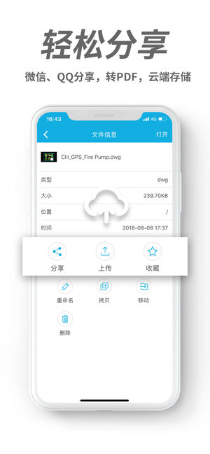 CAD看图王(原CAD手机看图)-全球累计免费用户超过2500万,集快速看图、DWG高级制图于一身的CAD看图工具。支持AutoCAD、浩辰CAD、天正建筑等国内外CAD图纸的显示,兼容各版本DWG文件,图纸原生显示放大不失真。专业的fonts字体解析告别文字乱码,实现CAD手机看图,DWG图纸编辑、测量、标注、图块统计,文字查找替换,适用于现场施工、现场勘测及设计。 可随时随地通过微信.QQ.邮件进行CAD图纸交互分享,可将DWG转换为PDF和图片格式。支持百度网盘、Dropbox、OneDrive等云存储,可实现在手机、平板和PC端同步文件,协同编辑DWG图纸。 CAD看图王…