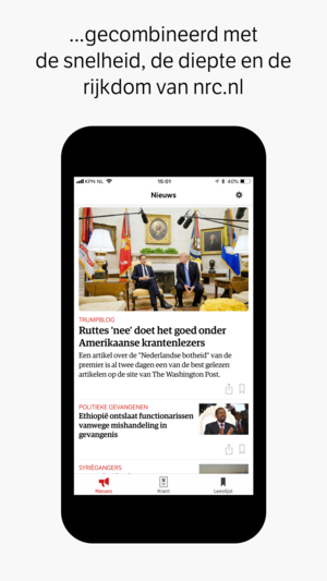 Deze gratis iPhone en iPad-app biedt u het laatste nieuws en de digitale versie van NRC Handelsblad. NRC Handelsblad is een middagkrant en biedt elke dag nieuws, achtergronden en duiding, op een toegankelijke manier. De krant verschijnt zes dagen per week (van maandag tot en met zaterdag). Losse nu…
