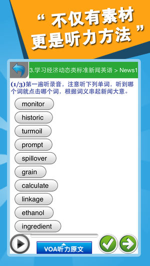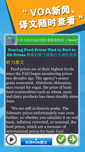 |--史上最有效的VOA听力训练方法,配套图书新华书店热销! !--| ● 史上最有效的VOA听力训练方法,配套图书正在全国新华书店热销! ● 结合艾宾浩斯遗忘曲线进行反复练习。 ● 更多学习辅助内容:新闻译文、知识点睛、听写练习。 ● 海量VOA广播级原音,石油工业出版社授权发行。 21天可以收获什么? ◎ 通过21天养成良好的VOA听力学习习惯 ◎ 听懂VOA慢速新闻英语中社会类的新闻 ◎ 听懂VOA标准新闻英语中社会类的新闻 ◎ 无障碍地收看美语发音的英文社会新闻类电视节目 ◎ 通畅地阅读报刊杂志中短篇的社会新闻报道 21天的VOA学习怎样安排? 我们依据21…