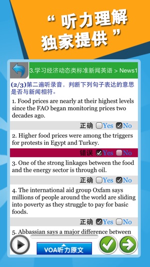 ● 史上最有效的VOA听力训练方法,配套图书正在全国新华书店热销! ● 结合艾宾浩斯遗忘曲线进行反复练习。 ● 更多学习辅助内容:新闻译文、知识点睛、听写练习。 ● 海量VOA广播级原音,石油工业出版社授权发行。 21天可以收获什么? ◎ 通过21天养成良好的VOA听力学习习惯 ◎ 听懂VOA慢速新闻英语中文化类的新闻 ◎ 听懂VOA标准新闻英语中文化类的新闻 ◎ 无障碍地收看美语发音的英文文化类电视节目 ◎ 通畅地阅读报刊杂志中短篇的文化新闻报道 21天的VOA学习怎样安排? 我们依据21天习惯养成理论,结合艾宾浩斯遗忘曲线理论,精心设计了每天的学习内容。 第一…