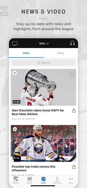 The official NHL® App is the best place to unleash your hockey fandom with live hockey on your iPhone and iPad! Go rinkside with your favorite team and players with the NHL.TV™ Free Games of the Week, radio broadcasts, stats, scores, news, and more! ••• NEW FOR 2018-2019 SEASON ••• • Watch highligh…