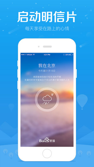 百度旅游 - 让旅行更简单 最专业的旅行攻略指南,最智能的行程定制,最有趣的周边游地点推荐,最方便的一站式预订,尽在百度旅游! AppStore官方推荐少数精品APP 用户数量居国内行业第一 内容贡献用户超过300万 国内外精编旅行目的地数超10万 目的地2015年查看超过10亿人次 【新功能】 1.登录什么鬼,能不能不登录建个行程看看啊~现在可以了! 2.目的地信息更全面,更有当地服务贴心推荐! 3.我搜目的地,你推荐相关景点、门票、酒店呗~OK!综合搜索满足你! 【功能亮点】 智能行程:为你一键定制专属行程计划,你有需求我有行程,你的免费私人导游。 周末去哪儿:帮你发现周末好去处…