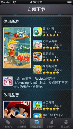 iPhone下游戏,就用“爱游戏”! 查找更省时,使用更省钱! “爱游戏”是为广大iPhone手机用户精心制作的一款免费应用。第一时间为您提供最新游戏以及游戏限免降价信息,我们所做的一切就是帮您省钱、省时间,让您迅速找到、安装自己喜欢的iPhone最新、最热的游戏。 为保证“爱游戏”提供消息的有效、及时、准确,我们自行开发出十多万款iPhone游戏产品库,同时每天由自行研发的搜索系统实时收集整理,十多位资深、专业的编辑每天为您精挑细选。 下面给大家介绍下我们这款应用的主要功能: 1、第一时间为您提供最新上架的游戏,比别人提前尝鲜; 2、根据我们独有的游戏排名算法,…