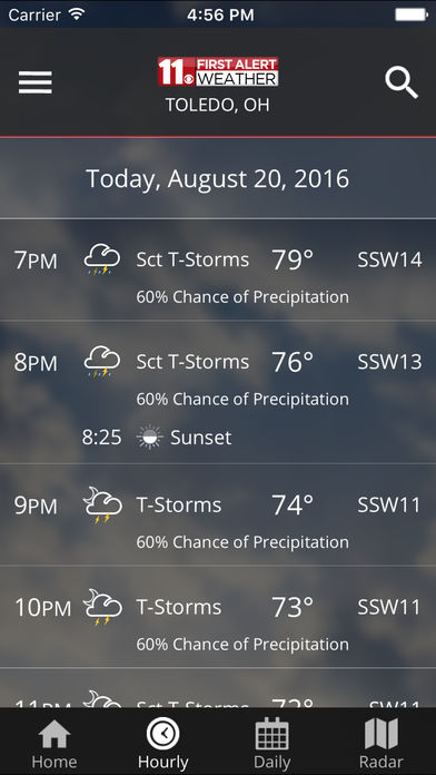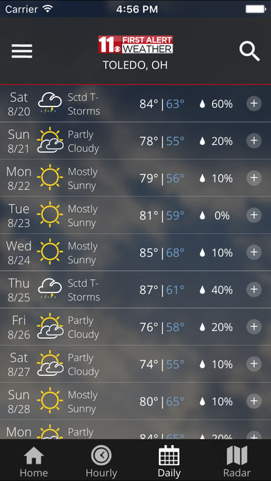 The WTOL Mobile Weather App includes: * Access to station content specifically for our mobile users * 250 meter radar, the highest resolution available * Future radar to see where severe weather is headed * High resolution satellite cloud imagery * Current weather updated multiple times per hour * Daily and Hourly forecasts updated hourly from our computer models * Ability to add and save your favorite locations * A fully integrated GPS for current location awareness * Severe weather alerts from the National Weather Service * Opt-in push alerts to keep you safe in severe weather