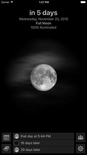 A simple and beautiful app to show the current phase of the moon. - See the current phase of the moon in gorgeous details. - Swipe your finger to change the current day. - See the next full moon, the next new moon or any date between 2011 and 2030. - Use the almanac to browse the predictions. - Set…