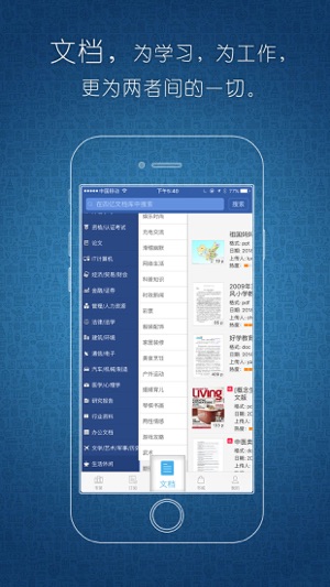 简介 海量文档图书全部免费看。还可以备份你所有资料图书到云端,方便你随时随地阅读。 主要特点: ·多文档格式支持:ePub/PDF/TXT/mobi/umd/office格式 ·TTS语音引擎,读给你听; ·云服务:同步、备份阅读的文档,让跨设备阅读、多屏互动成为可能; ·简单手势操作:目录导航、添加或删除书签、亮度调节... 内置豆丁书城,工作总结、创业资料、企划文案、教育资料、考试习题、行业资料、小说、经管、社科、历史、杂志......总有适合你的文档图书;定期更新精品图书,限免特价活动不断,一起来学习成长吧! 其他功能: ·提供多种字号选择、背景配色选择、白天夜晚模式,让阅读更舒…