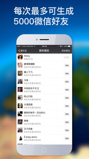 我的老婆是微商,老婆为我带盐!这是我根据微商老婆的需求开发的加粉加客户APP,经过大半年实践,老婆的微商生意也是做得风生水起,现在我将它登上App Store,希望也能帮上同是微商的您。 微商加粉宝是一款帮助你自动快速获得客户资源的APP。它轻巧,便捷并高效。无需注册,下载打开即可上手使用,一次下载终身使用。 ====软件核心功能:==== 1. 微信加好友 支持按照省份,城市,运营商一键自动生成大量好友并导入到手机通讯录,并自动导入微信添加好友。 不仅是微信,支付宝或其他社交APP同样支持加好友,你可以通过APP认识结交更多的朋友,获取更多优质客户。 2. 客户管理 支持按照区域在客户…