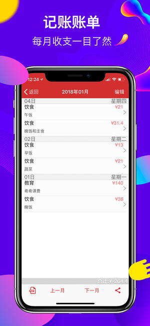 您是否还在为每个月挣的不少剩的不多,而不知道钱花在哪里的状况而烦恼了?本产品将帮助您养成及时记账的习惯,优化消费结构,促进合理消费。一款日历式的记账本,让你轻松管理日常消费。 功能介绍: - 增加记账:以简洁的操作及尽少的输入操作帮助你记录每条收入支出项【账单拍摄/计算器/小数点】 - 历史记录:以月为单位列出每月的收入支出项,可以修改,删除每项记录 - 收支分析:以图表的形式分析每月的收入,支出结构 - 收支统计:查看某个时间单位内(周,月,季)的收入支出对比 - 预算设置/对比:设置支出预算并对比支出,预算额 - 密码保护功能(支持TouchID) - 自定义收入、支出类型 - 按月…