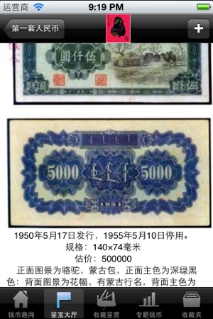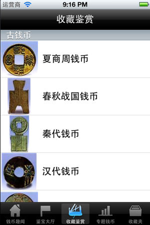 钱币很神奇,发行量巨大,却又具有很高投资增值回报。 以新中国第一套人民币为例,现在全套价值400万。 App系统介绍了,从夏商周开始,直到新中国发行流通的货币。 是收藏爱好者的好工具,也可以增长知识。不论是普通流通币, 还是流通纪念币, 其图案不仅有代表性的历史人物图像, 也有名山大川、风景名胜、国卉名花, 这些艺术图案都是经过著名的艺术家群体反复揣摩、精心设计的, 它们都是一幅幅精美绝伦的艺术品, 具有极高的艺术价值和欣赏价值。收藏钱币既有普及文化艺术知识功能, 而且具有保值增值功能。