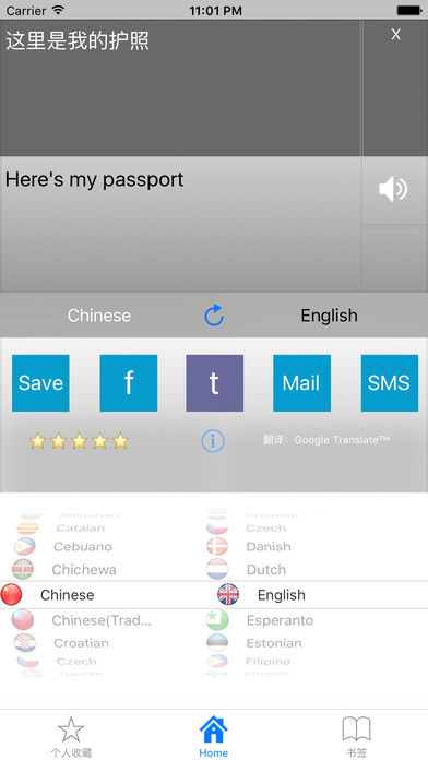 这是一款通用程序,也就是说,它可以在iPhone和iPad上使用。 我的Translator Pro是一款个人翻译器,可以用90种不同的语言翻译任何文本或惯用表达。 我的Translator Pro是App 商店里可买到的最完全的翻译工作。 翻译声乐应用程序 Apple Watch 对于成语 Apple Watch 它的众多功能中包括: 即时翻译(实时) 你一开始写作,即时翻译就开始运行了。它能在你写作时自动完成翻译。 -演讲文本- 讲这门语言的人可以阅读翻译,从而改善你的发音。 这是唯一用60种语言翻译的软件。 新功能:《放慢》按钮可以让你降低语音速度,从而更有效地学习。 -常用语手册- 该应用程序包含了一系列最为常用的习惯用法,并按类别排序。这将在你的旅途中起到很大的帮助。 你也可以在不使用网络的情况下将这些短语都译成60种不同的语言(对没有3G数据漫游服务的人来说是理想选择)。 通过使用语音功能,你可以让别人直接听到你翻译好的句子。 -存储有10,000个句子- 这个新版本中包含翻译成59种语言的200个句子。这就意味着你将可以在程序本身中使用10000多个句子(脱机模式)。 -保存- 你可以保存任何单词、短语或句子,并随时从“收藏夹”标签中读取。 -宽屏模式- 宽屏模式让你可以在更大的背景中显示你翻译好的信息,这样你就可以在国外旅行时让别人明白你(在旅馆,出租车上等) -短信,电子邮件和- 你可以通过短信、电子邮件,或者发布到你的Facebook墙上发送你的翻译。 你现在可以与你在Facebook上的朋友用他们自己的语言交流。 新功能:你现在可以将你翻译好的文本发布到你朋友的Facebook墙上。 这款应用程序可以翻译以下任何语言: 南非荷兰语,阿尔巴尼亚语,阿拉伯语,亚美尼亚,阿塞拜疆,巴斯克语,白俄罗斯语,孟加拉语,波斯尼亚语,保加利亚语,加泰罗尼亚语,宿务,齐切瓦语,中国,克罗地亚语,捷克语,丹麦语,荷兰语,英语,世界语,爱沙尼亚语,菲律宾语,芬兰语,法语,加利西亚语,格鲁吉亚语,德语,希腊语,古吉拉特语,海地克里奥尔语,豪萨语,希伯来语,印地文,苗族,匈牙利语,冰岛语,伊博语,印尼语,爱尔兰,意大利,日本,爪哇语,卡纳达语,哈萨克语高棉语,韩国,老挝,拉丁语,拉脱维亚语,立陶宛语,马其顿,马达加斯加,马拉雅拉姆语,马来语,缅甸(缅甸),马耳他,毛利人,马拉地语,蒙古语,尼泊尔语,挪威语,波斯语,波兰语,葡萄牙语,旁遮普语,罗马尼亚语,俄语,塞尔维亚语,斯洛伐克语,斯洛文尼亚语,索马里语,西班牙语,塞索托语,斯瓦希里语,僧伽罗人,苏丹,瑞典,塔吉克,泰米尔语,泰卢固语,泰语,土耳其语,乌克兰语,乌尔都语,乌兹别克,越南,威尔士,意第绪语,约鲁巴语,祖鲁语