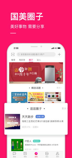 “线上选购下单,线下精品体验”——国美线上线下O2O模式 【前方高能】 买贵补 晚到陪 不满意退 以旧换新 电视送装一体 【产品特色】 加入【美媒榜】享生活 全新页面,推荐更贴近你喜好的潮流讯息;编辑严选达人推荐,每日为你甄选生活品质好货;更有视频精选频道,让你连绵不绝刷视频爽到爆! 【商城】好物购不停 商城融合了团抢、掌上专享、国美超市、金融理财、国美管家等各个板块,还有精选好物清单推荐,轻松一站式购物,分分钟治好你的选择恐惧症。 轻松【开店】当老板 无门槛拥有自己的小店,根据自己的兴趣可添加各类商品至店铺,用户通过此店铺购买商品,店主可获得相应的佣金。足不出户,轻松赚钱。 【返利】赚钱两不…