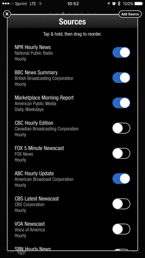 Hourly News 可在运行状态下自动播放来自多个媒体的最新资讯,是一款非常易于操作的应用程序。 Hourly News可向您传达来自NPR , BBC, CBC, ABC, CBS, ESPN, VOA, SRN, BMM, RTHK, New York Times, DW 和FOX的最新消息,并支持用户添加自定义信息源。 软件特点: 提供最新消息及梗概; 运行程序自动更新; 支持后台运行; 支持遥控操作; 操作非常简单; 全天候运行; 支持新闻订阅的重新排序、激活和取消; 支持添加自定义新闻订阅。 下载速度: 同所有运行程序一样,下载速度主要由网络连接(edge、3G、4G、L…