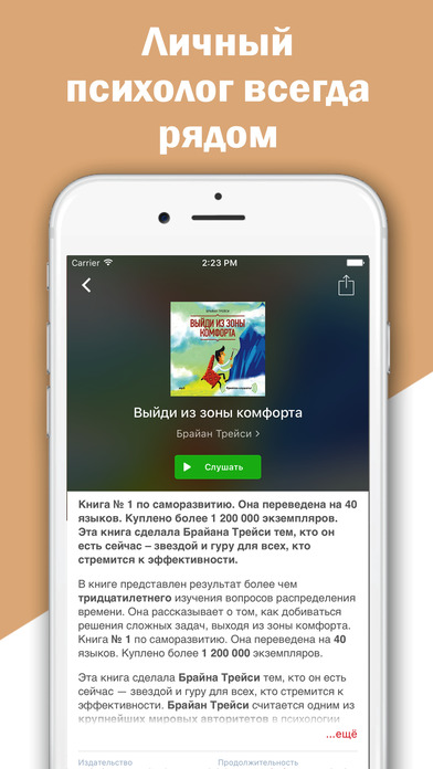 Самый большой каталог книг по психологии в AppStore! - обширная библиотека лучшей литературы по психологии и саморазвитию - лучшие авторы - Стивен Кови, Дейл Карнеги, Зигмунд Фрейд, Наталья Ром, Игорь Вагин, Александр Свияш, Радислав Гандапас, и др. - советы и уникальные методики от профессиональных психологов - все разделы психологии: воспитание и педагогика, саморазвитие, практическая психология и др. - самые популярные и эффективные тренинги - все книги представлены как в обычном текстовом варианте, так и в аудиоформате В приложении вы найдете информацию о способах достижения личного успеха, методиках воспитания детей, средствах для обретения уверенности и независимости, формулах поведения в сложных ситуациях и о многом другом. Приложение «Психология и тренинги» - это самый большой каталог книг и курсов по психологии от таких известных авторов, как Стивен Кови, Дейл Карнеги, Игорь Вагин, Юлия Гиппенрейтер, Наталья Ром, Александр Свияш, Радислав Гандапас, Зигмунд Фрейд и многих других. Здесь собраны советы и уникальные методики от гуру психологии. Путь к познанию личности станет проще с приложением «Психология и тренинги», которое поможет научиться управлять собой и другими людьми. Скачайте приложение «Психология и тренинги», развивайтесь и совершенствуйтесь под руководством профессиональных психологов, бизнес-тренеров и экспертов по саморазвитию!
