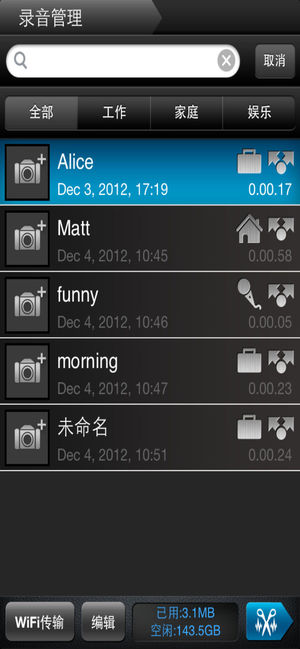 易用,功能强大的录音机 详细功能介绍: 1.易于录音: (1)一键录音,录音时有实时波形显示 (2)免静音录音:可以在声音低于静音阈值时自动停止录音,并在高于静音阈值时自动启动录音, 静音阈值可在录音时根据环境很方便的手工调节, 免静音功能可大幅减少录音完后的整理时间及节省磁盘空间 (3)录音时可随时暂停,并根据需要随时启动 (4)录音时可以一键标记, 方便录音完成后快速定位并重听 (5)自动标记: 免静音录音时, 会在每次自动启动录音时自动增加标记点 (6)可使用蓝牙耳机或外置麦克风录音 (7)录音时长只受限于磁盘空间和电池电量,可进行10小时以上的长时间录音 2.易于回放: (1)…