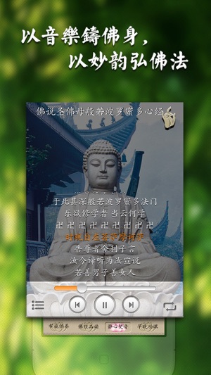 【佛经梵音】是一款品读佛教经典和聆听佛音智慧的经典应用,秉着传播佛教文化,弘扬佛法精神的理念,为佛友提供最新的佛教音乐、精彩佛像、佛教经文、佛教早课、晚课等各种最好的修行服务,是您修行路上的好帮手。 传播佛经的智慧,散发佛音的空灵——尽在【佛经梵音】 每天我们都忙着,烦恼像发丝那样,剪不断,理还乱。面对人世间冷暖,迫切的生活,静下心来聆听【佛经梵音】,能让我们都能拥有慈悲,并从中得到健康,更能体会清静。放松神经,聆听内心。 主要功能 *布施供养* 每日虔诚心礼佛,求佛庇佑,功德无量。 *早晚功课* 提醒您做早课晚课,每日虔诚心反省和忏悔。心中只有佛念,不去胡思乱想,思想安定了,清净了,烦恼苦…