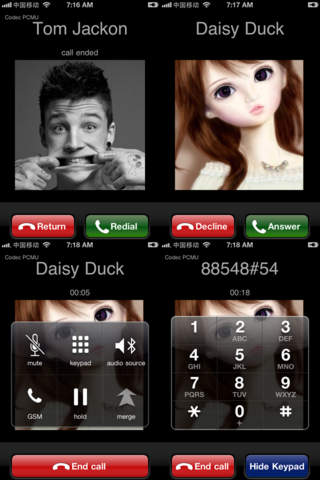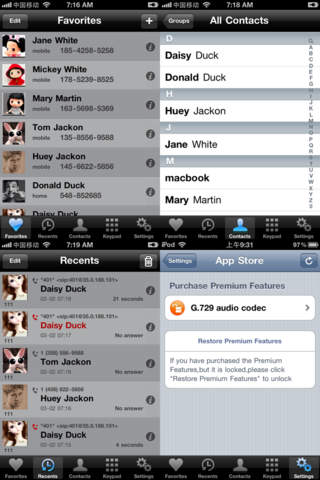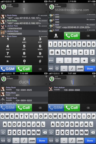 Dialer+ 是一种基于SIP的软电话 支持 iPhone,iPod touch和iPad 如果你没有SIP账号,也可以把Dialer+当做一个支持T9输入法的快速拨号工具 标准功能 •更快地找到联系人 - 使用手机键盘查找名称,拼音缩写或部分号码数字。 - 直接拨号盘上键入联系人姓名。键入“zs”,“zhang” 或“san” “张三” - 包含“6789”的任何电话号码。 (例如,“315-909-6789”,“487-678-9847”) - 根据公司名称,电子邮件地址搜索。 •T9输入法,支持数字键盘输入字母 •iOS 4.0 +后台支持 •当无网络或者网络缓慢时,可切换到GSM呼叫 •多帐户支持 •多个帐户时自动切换到最佳服务提供商 •预配置的VoIP供应商名单 •来电显示 •免提,静音和保持 •通话记录 •联系人列表和联系人收藏 - 利用iPhone的通讯录 •铃声和联系人头像 •多个来电支持 - 两个通话之间的切换,合并和分离 •音频编解码器包括:G.711,G.722,iLBC的,Speex语音和GSM,可通过应用内购买(IAP)添加 G.729编码支持 •RFC 2833 DTMF的支持 •VPN 支持 •UPnP 支持 •iPhone 4的视网膜显示支持 高级功能 网络穿透支持 STUN 和 ICE ,以及 UPNP •媒体的效率和质量 - 回声消除,VAD(静音检测) •支持 QoS(服务质量) •支持安全和加密,TLS和SRTP •DNS SRV记录查询 ***重要事项,请仔细阅读*** SIP - Dialer+软电话是一个SIP客户端,而不是一个VoIP服务。你必须有一个VoIP提供商的服务,支持标准的SIP客户端使用它的使用。 ***重要提示:在3G网络中使用VOIP 一些移动网络运营商可能会禁止或限制使用其网络的VoIP。他们可能会禁止使用VoIP或使用其网络的VoIP时,施加额外的费用。如果您同意您的移动电话运营商的网络限制规章制度,并使用本应用程序,Dialer+的作者将不承担任何费用,收费或承担VoIP在3G运营商施加的追究责任。