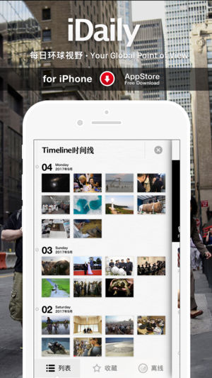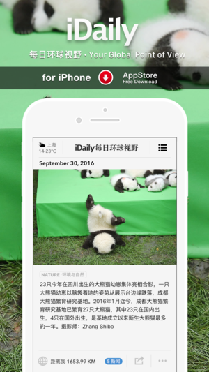 「iDaily · 每日环球视野」是第一个提供超越 3000px 超高清分辨率图片的中文媒体应用,每天由中国最出色的图片编辑独家挑选,为读者奉上最高清晰度的全球视野体验。 特点: 1.超越视觉的震撼体验:3000px 超高清模式,前所未有的细节 2.距离我:地球发生的每一件事情,与你的距离都不会超过 20,000 公里 3.背景阅读:维基百科、权威媒体,最人性化的文字阅读体验 4.分享是美德:通过微博、邮件与朋友们分享你的感动 更大,更清晰,体验超越人类视觉的震撼! 鸣谢: iPad.ly | 网址最短的中文 iPhone + iPad 资源分享网站荣誉推荐