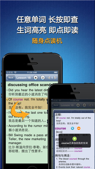《说一口地道的商务英语》涵盖了350个商务英语中常用的口语会话。 √√标准发音+英汉对照+有声全文字典+点读机 《说一口地道的商务英语》的每个句子都有标准的真人读音, 英汉对照, 即点即读. 文中每个英文单词都有详细的解释, 音标, 发音以及例句用法, 在阅读的时候只需在任意单词上长按超过一秒钟, 即可查阅, 即点即译, 真正做到哪里不懂点哪里. √√强大的学习功能 《说一口地道的商务英语》提供了【生词】【收藏】【字典】【单词测试】【单词拼写】等附加功能, 可以将文中任意单词加入到【生词】, 生词在文中用【特别的颜色】标识, 把喜爱的课程加入到【收藏】, 对任意单词进行检索, 测试和拼写练习. 多种播放模式: 单句, 单句循环, 全文, 全文循环, 全书循环, 支持后台播放, 可切换英汉对照模式与纯英文模式. 新增语速调节功能, 三种语速, 任意调节. √√强大的进度管理功能 《说一口地道的商务英语》提供了进度管理, 时间管理, 每本书, 每个课程, 每个生词都有学习进度, 学习时间, 精确掌控学习进度. √√智能生词库与测试题库 《说一口地道的商务英语》为文中的每个单词都配备了测试题库, 【单词测试】智能选词, 频繁测试【生词】, 想记不住生词都难. 此外还配备了AppStore上唯一可以直接在文中做【完形填空】的强劲功能. √√安装后再也不需要联网 《说一口地道的商务英语》完全是单机运行, 不会联网, 不用担心网络资费. √√最人性化的操作方式 《说一口地道的商务英语》全文定位点读, 同步高亮显示. 长按任意单词即弹出词典, 同时可将单词加入生词列表. 不需要进度条式的拖拽, 没有查字典的繁琐. 最新支持耳机线控操作, 使用更加轻松便捷. √√iPod, iPhone, iPad通用 《说一口地道的商务英语》用最科学的方法帮助您快速稳固的提升听/说/读/写各项技能, 不断挖掘您的学习潜能. √√联系我们 官方微博: http://weibo.com/u/2616259511 电子邮件: littlepipi2011@gmail.com