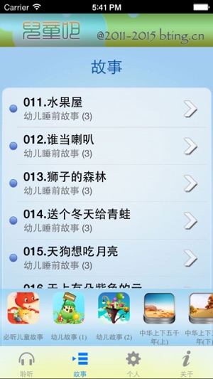 婴幼儿睡前故事由二十位著名童话作家两百篇作品组成的一套讲给小孩听的故事书,专门为七岁以下的儿童”量身定做”。播音员的精彩演绎,使每个故事都成为一个精彩的故事剧,听起来兴趣盎然,一定能充分调动孩子们的想象力和对故事的热爱,并能培养孩子集中注意力的能力。 让孩子们通过声音看到故事中所描绘的画面。让孩子的想象力在声音的魅力中插上翅膀! 《必听儿童故事大全》,包含6000以上在线儿童故事,其中包括睡前故事、童话寓言、历史故事、西游记故事等等,不断更新中,适合各年龄段儿童收听。 (1)免费版,大约30%故事可完全免费收听 https://itunes.apple.com/cn/app//id4776…