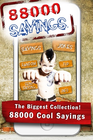 The world’s greatest app for sayings & jokes! ——————————————— OVERVIEW ——————————————— We’ve created the world's greatest app for sayings, quotes and jokes! So you’re looking for the perfect quote or saying? Or just want to have fun and a good time? Enjoy the best of the best & funniest sayings, ever! ——————————————— QUANTITIES ——————————————— ● 88,000+ cool sayings, funny jokes & cute quotes - no internet connection required! ● 130 categories - for anyone, any taste and any mood: ✔ Cool Sayings ✔ Sex Jokes ✔ Romantic Quotes ✔ Attitude Sayings ✔ Sarcastic Sayings ✔ Friendship Sayings ✔ T-Shirt Sayings ✔ Insulting Sayings ✔ Things Not To Say During Sex ✔ Sticker Sayings ✔ Car Bumper Sayings ✔ Funny Ways To Annoy People ✔ Yo mamma ✔ Emo Jokes ✔ Funny Confucius ✔ Men and Women ✔ Oneliners ✔ Crazy Thoughts ✔ Weird Language ✔ Last Words ✔ Knock Knock Sayings ✔ Funny Names ✔ Funny Military Quotes ✔ Crazy Bollywood Subtitles ✔ Weird Band Names ✔ Love Sayings ✔ Love Poems ✔ Good Morning SMS ✔ Good Night SMS ✔ Flirting SMS ✔ Broken Heart Quotes ✔ Humorous Sayings ✔ Wise Quotes ✔ Geek and Nerd Quotes ✔ Irish Blessings ✔ Rumi and Sufi Sayings ✔ Bible Verses ✔ Birthday Congratulations ✔ Easter and Christmas Quotes ✔ Valentine’s Day Wishes ✔ Things You’d Love To Say But Can’t ✔ Thank You! ✔ Tongue Twister ✔ Tattoo Phrases ✔ Latin and Greek Tattoo Phrases ✔ Get well soon and about 75 other categories! ——————————————— SECTIONS ——————————————— ● Favourites section for your favourite sayings & jokes ● Search sayings & jokes by full text search ——————————————— SHARING ——————————————— ● Social Networks ● E-mail ● Copy to clipboard ● SMS (text message) ——————————————— USABILITY ——————————————— ● Easy navigation ● Text to speech: The App reads (Internet connection required) ● Random saying ● Rate all sayings online ● Retina display ready ● Universal App ● Multilingual - you can change the language of your device also to German and Italian (40,000 English, 40,000 German, 8,000 Italian) ● All sayings are text ready - no need to cut and paste ——————————————— Just try it! It’s the best app of the kind, it’s the sayings application you have been waiting for! ———————————————