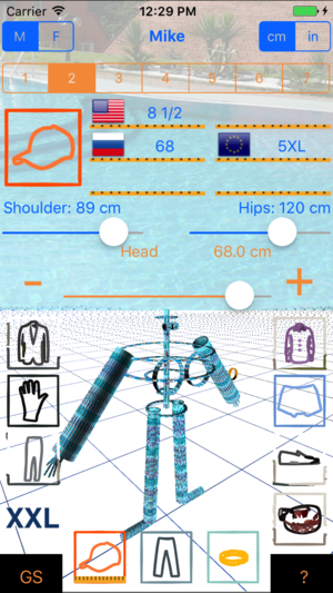 Good Sizer 3D可以帮助您在美国,欧洲,英国,日本或俄罗斯选择合适尺寸的衣服。 *足够知道其中一个尺寸 - 其余的自动转换。 *当你手上的所有尺寸,通过在线商店的旅行将变得更容易。 *可用7个部分(不同的名称) - 每个可以存储男性和女性的尺寸一次。 *选择单位:厘米(cm)或英寸(in)。 *选择部分。 *设置段名称.. *设置肩膀和臀部。 *您可以通过M / FM选择器更改公或母参数。 *所有参数可以即时更改。 *选择对象类型。 *使用滑块设置所需的参数。 *你可以从不同的角度看人。