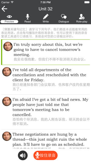 让您的英文纯正流利,帮助您拿下各类国际贸易订单! 听、说、读、写 四项全能的超级英语学习机。 —————————————————————————— 话题最全的外贸英语口语,6大类116个实用话题。 —————————————————————————— 外教权威编著!正版授权!6小时原声录音附赠!。 —————————————————————————— ◆把你的手机变成超级英语学习机◆◆◆◆◆◆◆◆◆◆ 【听】:本课程配有外教原声全文朗读录音,即点即读,想听哪里听哪里,想听几遍听几遍,培养良好的英文语感。 【读】:您可以跟着外教一起读,外教读一句,您模仿一句,手机会将您…