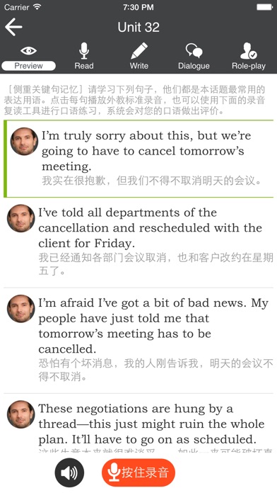 出国旅游的时候,如果谁还拿着一本书来跟外国人问路,那是实在是太老土了吧。爱疯你肯定得随身带着的啦,所以呢,这款APP实在是太有用处啦! 应用商店唯一无需联网的全语音英语学习软件 权威引入《剑桥英语智能评测系统》! 全程外交朗读,原声录音,长达440分钟! ◆◆◆◆◆◆◆◆◆◆ 听、说、读、写 四项全能的超级英语学习机。 ———————————————————— 话题最全的旅游英语口语,10大类122个实用话题。 ———————————————————— 外教权威编著!正版授权!6小时原声录音附赠!。 ———————————————————— ◆把你的iphone变成超级英语学习机 ◆◆◆◆◆◆◆◆◆◆ 【听】:本课程配有外教原声全文朗读录音,即点即读,想听哪里听哪里,想听几遍听几遍,培养良好的英文语感。 【读】:您可以跟着外教一起读,外教读一句,您模仿一句,iphone会将您朗读的句子录音并回放,逐字逐句纠正您的口语发音。 【说】:您可以和外教进行模拟实景会话练习,您选择一个角色来扮演,iphone可以将您的虚拟会话录音并回放,提升您口语的实用能力。 【写】:根据外教录音,您将打乱单词顺序的句子排列正确,是您提高口语听力的好方法。 ◆史上最全的旅游英语口语话题王! ◆◆◆◆◆◆◆◆◆◆ 本课程,由外教结合英语交流实际需求、以及外教在中国多年的英语教学经验编写制作而成。是最符合中国英语学习者的口语入门课程。 本课程分为10大类共122个实用话题: 旅行社服务 1.介绍本社情况 2.线路设计与安排 3.推荐特色产品 4.具体价位介绍 5.价格优惠方案 6.寻求国际合作 7.推广国际项目 8.代办签证服务 9.代订旅游机票 10.代订酒店房间 11.服务满意度调查 12.处理客户投诉 导游服务 13.机场接待游客 14.安排游客上车 15.确认酒店预订 16.介绍酒店设施 17.代客登记入住 18.询问用餐意见 19.告知用餐地点 20.介绍用餐菜品 21.介绍饮食文化 22.游览安排说明 23.解释差异票价 24.介绍景点地图 25.景点讲解服务 26.景区安全警示 27.紧急情况处理 28.处理突发状况 29.协助客人购物 30.协助客人退房 31.协助托运行李 32.代客寄送包裹 33.安排游客登机 机场服务 34.提供票务咨询 35.更改预订服务 36.取消预订服务 37.提供机场问询 38.解释飞机晚点 39.解释航班取消 40.协助托运行李 41.协助安全检查 42.办理登机服务 43.协助寻找座位 44.调换座位服务 45.机内供餐服务 46.机上问询服务 47.晕机不适处理 48.协助领取行李 49.兑换钱币服务 宾馆服务 50.前台接待游客 51.登记入住服务 52.寄存行李服务 53.提供指引服务 54.调换房间服务 55.清理客房服务 56.点餐送餐服务 57.提供唤醒服务 58.提供留言服务 59.提供洗衣服务 60.提供维修服务 61.拒绝接受小费 62.处理物品遗失 63.处理账单错误 64.结账退房服务 饭店服务 65.介绍饭店位置 66.预订座位服务 67.更改预订服务 68.餐厅迎客服务 69.提供点菜服务 70.介绍菜肴服务 71.推荐菜肴服务 72.推荐酒水服务 73.介绍用餐礼仪 74.介绍餐后甜点 75.提供上菜服务 76.更换餐具服务 77.处理客户抱怨 78.打包带走服务 交通服务 79.地铁服务 80.汽车服务 81.火车服务 82.公交车服务 83.轮船服务 84.租车服务 85.向旅客售票 86.车辆检修 87.为汽车加油 88.处理交通违章 89.处理交通事故 景区服务 90.售票服务 91.验票服务 92.问询服务 93.广播服务 94.处理财物被盗 95.处理突发疾病 96.处理客户投诉 功能句集锦 97.邮寄包裹服务 98.银行业务服务 99.医院诊治服务 100.美容美发服务 商场服务 101.在超市 102.在服装店 103.在鞋帽店 104.在珠宝店 105.在特产店 106.工艺品店 107.在化妆品店 108.礼品包装服务 109.提供结账服务 110.回答保修期限 111.提供售后服务 112.处理退货退款 休闲服务 113.喝咖啡品茶 114.浪漫酒吧 115.画廊漫步 116.参观博物馆 117.欣赏电影 118.欣赏话剧 119.打高尔夫 120.玩转游乐场 121.蹦极攀岩 122.漂流冲浪