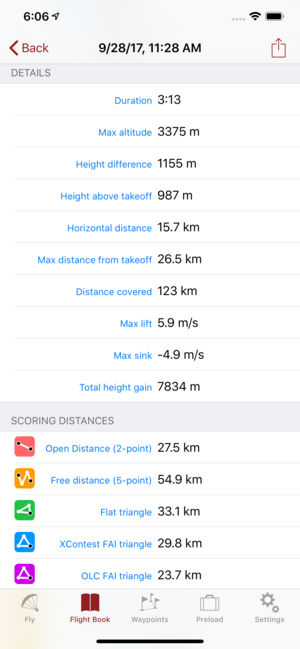 Flyskyhy forms your flight instrument during flight and shows all information you need for that. You get the normal data like altitude, climb rate, ground speed, and glide angle. But it also calculates and shows the current wind direction and strength, very important for your safety. A moving and r…
