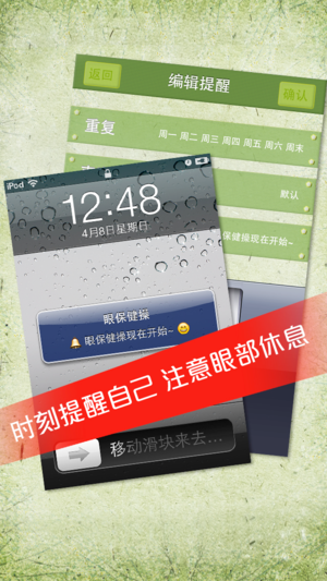 迎接iOS8的到来,特限免24小时,亲,还不快来下载~ 熟悉的音乐和口令,把您带回青葱的学生时代,眼保健操提供分步图解,视频演示,视力测试,护眼常识等功能。而且附带每日推送提醒功能,提醒您在工作之余也要保护好视力。 为健康,保护视力,让我们一起来做眼保健操吧! 完美支持最新iPhone5, iPhone 4和 iPod touch 高清屏幕! 产品特点: 1.眼保健操分步图解(2008新版的,非怀旧版):详细图文全解,力求标准有效,了解眼周穴位,舒缓眼睛压力 2.眼睛放松:视觉疲劳时,看图放松视觉神经,了解眼睛状况 3.视力测试:测试您的视力 4.护眼常识:养目,极目,熨目,浴目,运目…