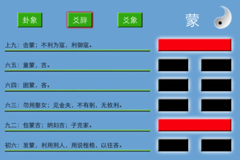 ###新游戏《七重奏》上线了,请火速前往下载! ### ###New Game 'Septet' is online now! ### 凝聚着中国古圣先贤古老智慧的《易经》,曾被误解为就是一本算命的书。其实,算命只是它最小的用途,那么《易经》究竟是一部什么样的书呢?神秘的《易经》,也称《周易》,是一部既古老又新奇,既陌生又熟悉,既高深莫测,又简单容易的书,是解开宇宙人生密码的宝典。自古以来,人类一直在努力探索着宇宙人生的奥秘,但是直到科技高度发达的今天,仍然没有破解宇宙的秘密,难道我们的老祖宗,在几千年以前就做到了吗? 《学易有道》本着寓教于乐的精神,彻底摒弃传统书籍的目录模式,将易经通过游戏的方式表现出来,让用户更轻松,更快的学习易经。 1.在主界面点击屏幕左边,进入学习模式;点击屏幕右边,进入游戏模式。 2.在学习模式,用户可以点击对应的爻来切换爻的阴阳,从而改变整个卦象,屏幕里则会出现相应的对卦象的描述信息,同时用户也可以通过上下左右滑动屏幕来改变卦象以及所要查看的卦辞。 3.如果你觉得学习累了,可以切换到游戏模式。在游戏模式里屏幕上将随机出现卦象名,用户则需点击爻来改变卦象,如果当前的卦象与屏幕里某个卦象名相同,卦象名会消失,就像大家以前玩的打字练习一样。 特色: ※ 摒弃传统书籍的目录模式,全新的章节选择方式。 ※ 最多只需六步,你就可以看到任何你想看到的卦象及解释,再也无需多次翻页。 ※ 游戏模式让你劳逸结合,同时迅速记忆卦象。