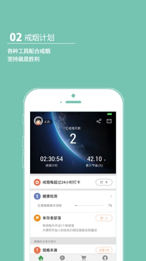 获百万烟民认可的戒烟,控烟神器 还有社区小伙伴们等着和你分享更多的经验和心得 好基友,一起走 赶紧加入戒烟军团,让我们紧紧抱团 要知道,你不是一个人在战斗,fighting p( ^ O ^ )q 【军团更懂烟民】 寂寞的时候香烟可以陪伴我,社交的时候好烟可以炫耀自己,心情不好的时候抽烟可以缓解情绪,开心的时候抽烟可以助兴,失眠的时候抽烟可以解闷,起床的时候抽烟可以提神,饭后一支烟赛过活神仙,蹲马桶的时候抽烟可以去味,思考问题的时候抽烟可以冷静,遇到美女的时候抽烟可以耍酷。。。是否觉得你的生活中无时无刻都离不开烟的陪伴?作为烟民的你可能比谁都更清楚香烟的危害,但却苦于无法摆脱。你心里明白…