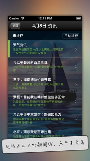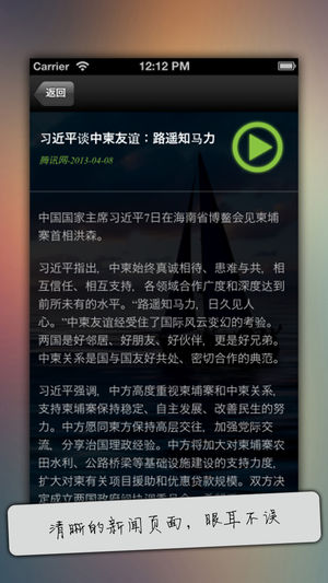 听新闻 每日新闻头条,语音播报,简单简洁。 快捷的缓存方式, 1分钟搞定当日新闻下载。 走路,开车随时收听! 每天还有固定好听的访谈节目《锵锵三人行》《财经郎眼》 --------------------------------------------- 欢迎大家的反馈 QQ群: 158874662 email: support_news@hotfm.cn ---------------------------------------------