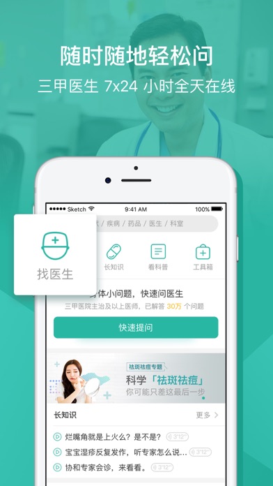身体上的问题,来问丁香医生:问医生,查医院,找药品,看科普;三甲医院主治以上医生随时在线,为你的健康保驾护航。 因为专业,所以信赖。 *************************************************** 丁香医生 App 能做什么? * 来问医生 - 三甲主治以上医生 7x24 小时在线,提供健康咨询 - 就诊前的困惑,就诊后的疑虑,随时轻松提问 * 就医推荐 - 看病不再烦恼,智能推荐可靠医院 - 良心的医院推荐,找个靠谱的医院看病不再困难 * 全能搜索 - 杜绝医疗广告,搜索结果值得信赖 - 你想了解的任何健康问题都可以通过搜索找到答案 * 健康资讯 - 粉碎健康谣言,健康生活从此开始 - 专业医生撰写,深刻认识疾病与健康 * 家人健康 - 常备家庭药箱,保障你和家人健康 - 帮你快速定位药品药店,减少病痛困扰 *************************************************** 我们期待你的反馈: 进入丁香医生App -> 我的 -> 联系客服 -> 意见反馈。 也可通过微博 @丁香医生 和微信「丁香医生」反馈给我们。 To abide by the laws, administrative regulations and rules of China, individual doctors in this app are also registered in the Yinchuan DingXiang Internet Hospital Co., Ltd., which is affiliated company was established by a same legal person, whose legal representative is one same individual with Guanlan Networks (Hangzhou) Co. Ltd., as the second site licensed to practice medicine. All doctors on the platform are subject to guidance and management from Guanlan Networks (Hangzhou) Co. Ltd. 依据中国相关法律法规,丁香医生 App 内的医生均接受「银川丁香互联网医院有限公司」的管理和指导,并将该互联网医院作为第二执业地点。银川丁香互联网医院有限公司与观澜网络(杭州)有限公司为同一法人的关联公司。