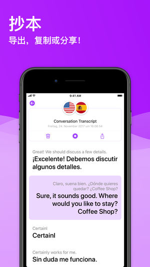 立即用全新的iTranslate Voice讲 40 多种语言! 完全重新设计的iTranslate Voice已经获得了数百万人的信赖,确保您能够获得 40 多种语言的完美语音翻译体验。我们的新常用语手册拥有超过 250 个预定短语,目标是在任何情况下为您提供帮助。我们的抄本功能可让您在几秒钟内导出或分享您的对话。 语音翻译 立即用 40 多种语言交流。 常用语手册 完美的旅行伴侣,拥有超过 250 个预定短语。 抄本 导出、复制或分享任何语音对话! 收藏 您个人的自定义常用语手册 ***买一全赠。*** 如果您已经订阅了一个 iTranslate 应用程序,您的PRO订阅就可以…