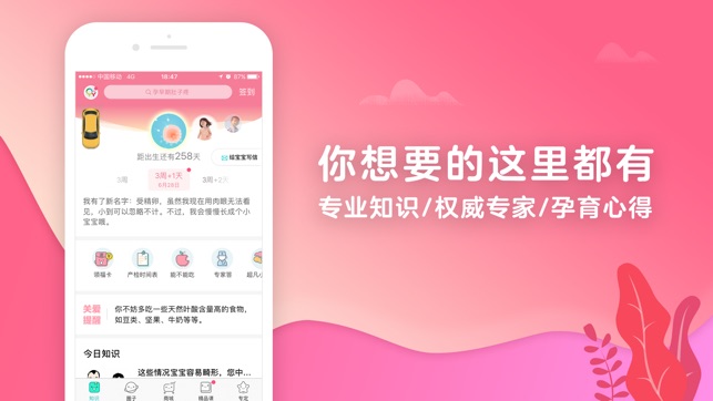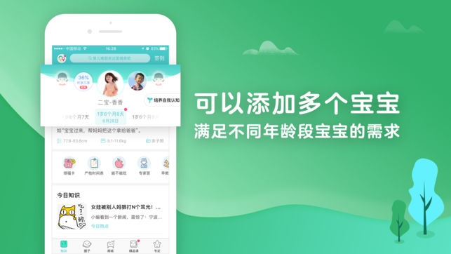 宝宝树孕育为母婴人群提供一站式解决方案,让中国父母科学从容的享受孕育过程和家庭生活。 【权威专业】 汇集百位专家、千万妈妈的孕育经验,丰富的孕育知识覆盖从备孕到宝宝6岁,为中国家庭提供全方位的孕育阶段知识获取、交流交友、商品与服务甄选购买服务,陪伴父母与宝贝成长。 【个性定制】 从备孕到育儿,每天的推荐的知识都是根据妈妈们所处阶段个性定制的,解决妈妈们不同阶段的育儿需求。 【妈妈交流】 开心热闹的妈妈交流圈子帮助您获得更多经验分享,在这里,你还能找到同城和同医院的小伙伴,闲暇时在兴趣圈聊聊手工、美食、旅游、美容保养,令孕育生活更加丰富多彩。 【特色工具】 产检数值怎么看?月子餐吃什么?宝宝辅食…