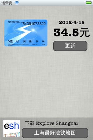 查看您的上海公交卡余额。由ExploreMetro为您提供,我们是‘游遍上海地铁线路图’应用程序的开发者。 注意:交易完成可能需要24-48小时,更新后的余额才能在应用程序上显示