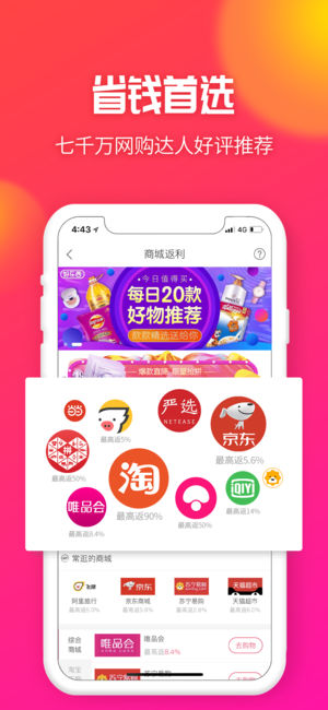 买年货吗?先上淘粉吧看看,复制宝贝标题搜索领券,下单再拿返利。返利直接发放支付宝,无需提现,就是这么贴心!买的多,省的多,买的多,返的多 【产品特色】 >专注购物返利8年,一键搜索淘宝、天猫、京东、拼多多、苏宁易购、亚马逊、唯品会、网易考拉、严选等国内外优秀电商平台优惠信息 >购物返利:去淘宝京东等平台购物还可返现(集分宝),最高可返95% >急速到账:所有返现不需自己提现,自动到账到支付宝(独家) >快捷登录:不需要注册新账号,直接用淘宝账号授权登陆即可 >安全信赖:超7000万网购用户和您一样都在使用 >海狐海淘:预…