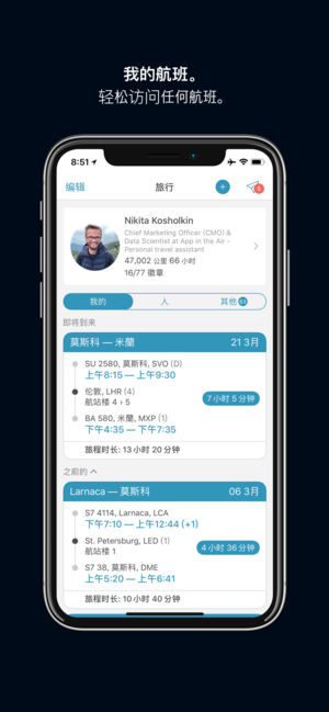 空中的应用程序软件 App -让您跟踪最新航班动态的个人飞行助手:提供实时状态,机场技巧和在机场的导航地图,您登陆的所有航班的轮廓。更多的是:应用程序下线工作(登机口变更和航班状态更新是通过短信类来传达,不需要数据漫游)。 Apple苹果关注支持:跟踪当前的飞行,通过机内飞行课程保持健康,争取时间到达仓门和安全的等待时间,探索你将飞越的标志性建筑。 Apple关注革命性的目光和强制触摸,使应用程序的体验更加美好! 新功能:自动办理航班登机手续。只需在航班的订阅内容中输入所有航班信息,我们将在开始办理登机手续后立即自动为您办理登机手续。 高级订阅: 年度和月度订阅让您获得实时航班状态更新…