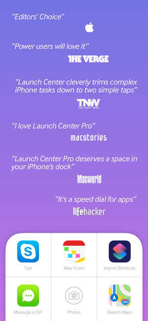 Speed up everyday tasks with simple shortcuts. It’s like speed dial for apps. Launch Center Pro saves you time by launching complex actions in a single tap. Message a loved one, search Yelp for the nearest coffee shop, jump straight to the camera in Instagram, all with just a flick of your thumb.…