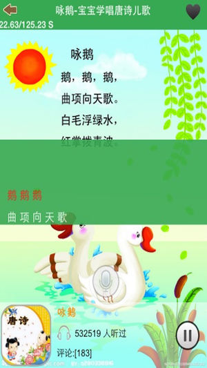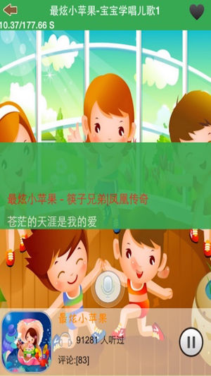宝宝唱儿歌听故事,让爸爸妈妈跟宝宝一起同唱那些让人耳熟能详的儿歌,并且通过学唱k歌记录宝宝儿时的声音,留作后续记忆,值得留念。它能增强与宝宝之间的互动,同时增进家庭感情,培养宝宝情商和智商。宝宝学唱儿歌也能让爸爸妈妈想起小时候难忘的时光,唤起童心,改善心情。这是一款很好的亲子应用,同时也是一款能抒发心情的娱乐应用。